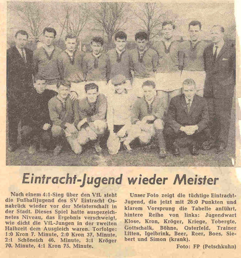 Diese Mannschaft ist die erfolgreichste Jugendmannschaft die es je im SV Eintracht gab. Sie wurde 1961 Stadt-Kreis-Bezirks-Niedersachsen und Norddeutscher-Vizemeister.